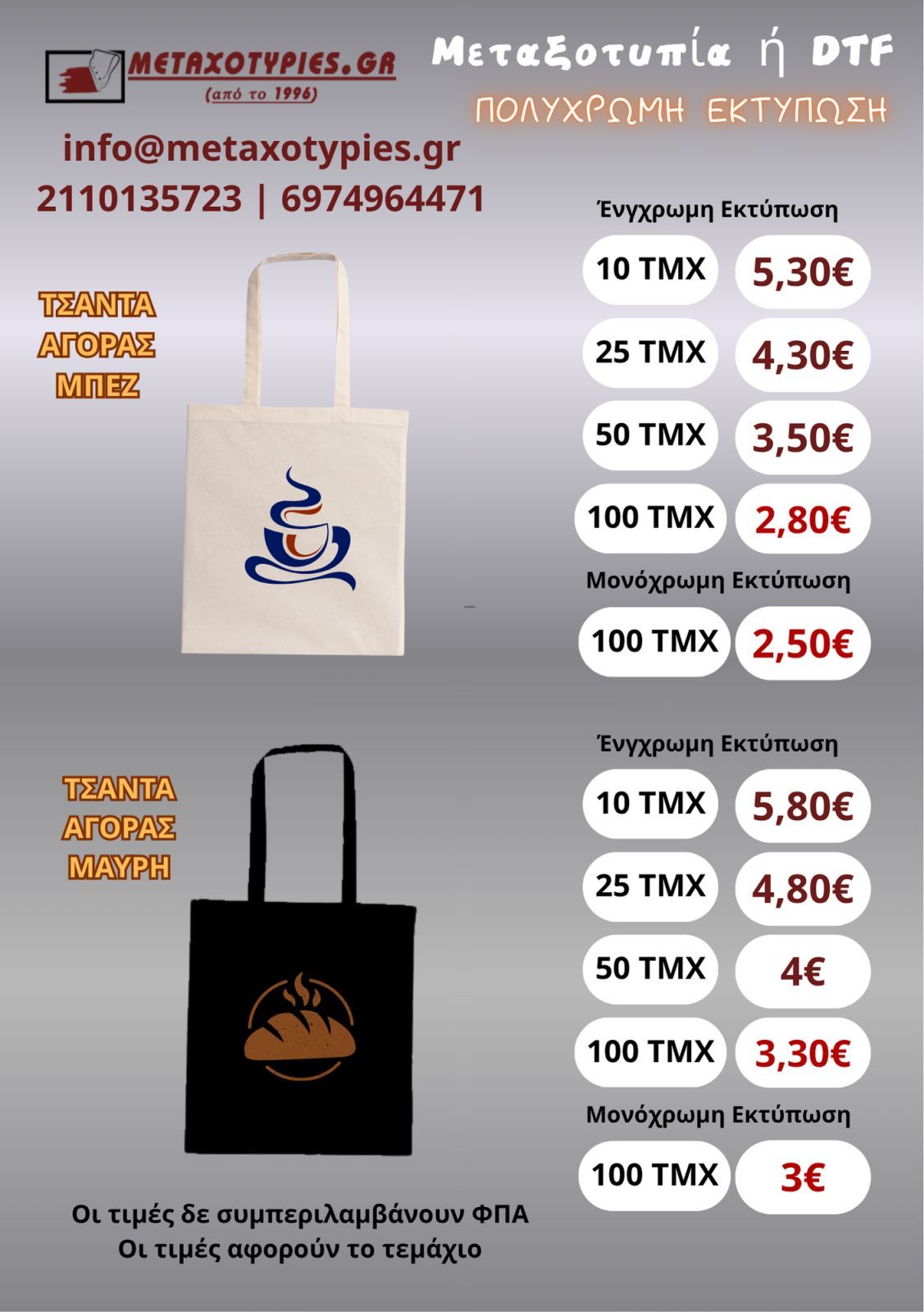 Πάνινες Τσάντες σε πολλά σχέδια και χρώματα.